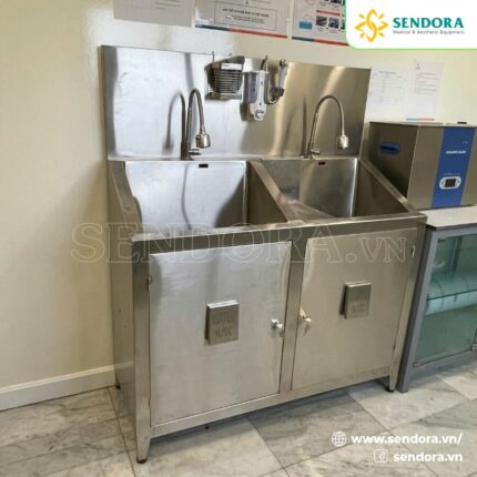 Sendora chuyên cung cấp bồn rửa tay vô trùng chất liệu inox 304 và composite, thiết kế cảm ứng tự động, tích hợp đèn UV và hệ thống lọc nước. Sản phẩm phù hợp với phòng mổ, bệnh viện, phòng khám cần đảm bảo điều kiện vô khuẩn tuyệt đối.