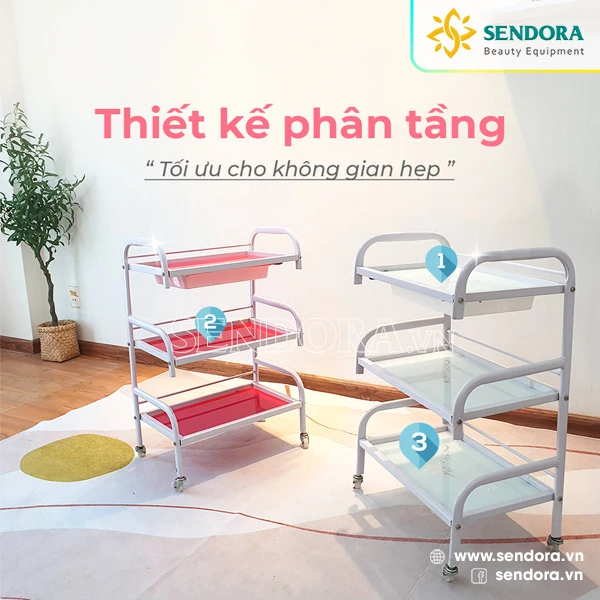 Mình dùng loại này cho spa, có cái ngăn kéo nhỏ nhỏ, để khẩu trang, bao tay vào đó cho vệ sinh